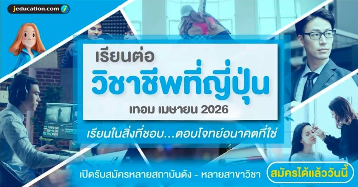 ![]() เรียนต่อวิชาชีพที่ญี่ปุ่น ภาคเรียนเมษายน 2026ดูรายละเอียดการรับสมัคร และรายชื่อสถาบันที่เปิดรับได้ที่นี่ |