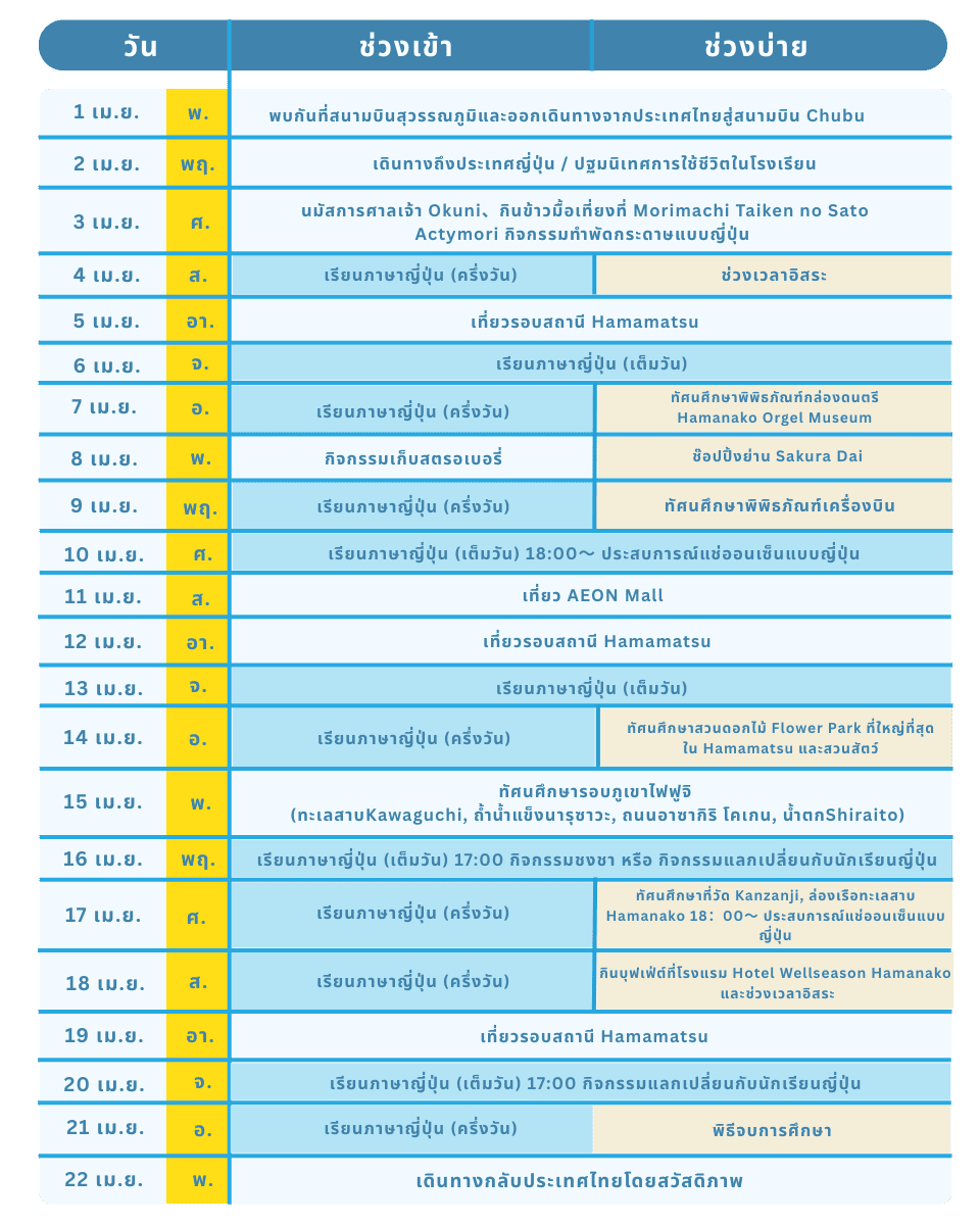 - น้องๆ ม.ปลาย ที่อยากสัมผัสประสบการณ์เรียน ม.ปลายที่ญี่ปุ่น เข้าค่ายแบบนักเรียน ม.ปลาย เก็บสะสมพอร์ต สะสมประสบการณ์ ได้ภาษาที่สาม