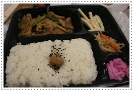 พอถึงโรงเรียน ก็เจอช่ออยู่แล้ว มาเร็วนะเนี่ย แล้วก็เริ่มเรียนต่อจากครั้งที่แล้ว เรียนกับ Tomiyama sensei เรียนคันจิ ไปตั้ง 5 ตัว แล้วพอถึงเวลาพัก เราหิวมากอ่ะ เลยจะไปหาอะไรกินกัน เลยถามพี่ในห้องว่า Sevenร้านสะดวกซื้อใกล้ ไปทางไปไหนเอาแบบใกล้ที่สุดอ่ะ พี่เค้าก็บอก แล้วเราก็เดินไป ปรากฎหาไม่เจอ จนเลยไปถึงร้าน Bento เลยเข้าไปซื้อ Bento เลย 55 แล้วก็รีบวิ่งกลับไปเรียน อ. ก็สอนไปแล้วนิดนึง แต่ก็เรียนทัน พอจบคาบ ก็รีบเอา Bento ออกมากินเลย แต่ว่าจะกินที่ไหน อะสิ ปัญหา ถ้าในห้องเดี๋ยว อ. ว่า ก็เลยไปหาที่นั่งกินข้างนอก แล้วก็ลืมหยิบกล้องไปด้วย เลยเข้าไปใหม่ อ. ก็บอกให้เรามากินในห้องก็ได้ เลยย้ายสำมะโนครัวกลับ 55 จากนนั้นก็รีบกิน เพราะตอนนี้ มีเวลาพัก 20 นาที แต่พอเปิดกล่องแล้วลองกินดู มันเป็นเหมือนไส้ ผัดกับผักอ่ะ ซึ่งเราไม่กินไส้อ่ะ ไม่อยากกินเลย แต่ ณ เวลานั้น หิวมาก จะอะไรช่างเหอะ แค่ให้อิ่มก็พอ