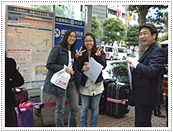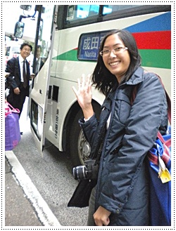 เที่ยง Okasan ก็ทำข้าวปั้นให้กิน อิ่มแปล้ เลย บ่ายโมงก็ออกจากบ้านBye Bye Mori house (ก่อนออกจากบ้าน Okasan ดันเห็นจดหมายที่เราไปหย่อนไว้ที่ตู้จดหมายหน้าบ้านซะงั้นอ่ะ แล้วพอเห็นว่าเป็นของเราเค้าก็ตกใจ แล้วก็รีบใส่ที่เดิม 555แหม..เราอุตส่าห์ซ่อน) แล้ว Okasan ก็ขับรถไปส่งที่ป้ายรถบัส แถว โอมิยะ พอไปยืนรอนี่รู้สึกเลยว่า วันนี้หนาวมาก ฝนก็ตก ลมก็แรง ถ้าอยู่ญี่ปุ่นต่อเสื้อกันหนาว คงไม่พออ่ะ เพราะมันจะหนาวขึ้นเรื่อยๆ